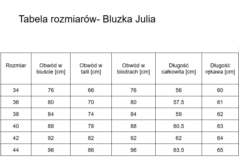 Zachęcamy do zapoznania się z tabelą rozmiarów. Wymiary podane w tabelach są obwodami płaszcza, a nie sylwetki, która powinna go nosić.