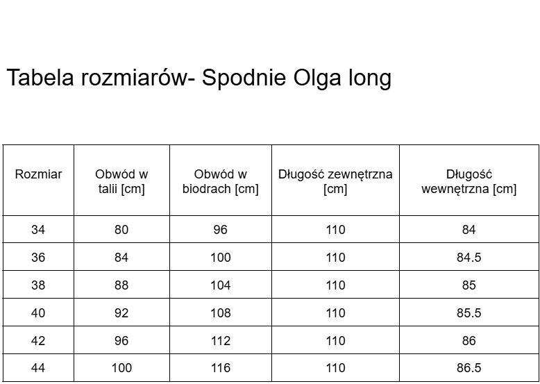 Zachęcamy do zapoznania się z tabelą rozmiarów. Wymiary podane w tabelach są obwodami płaszcza, a nie sylwetki, która powinna go nosić.