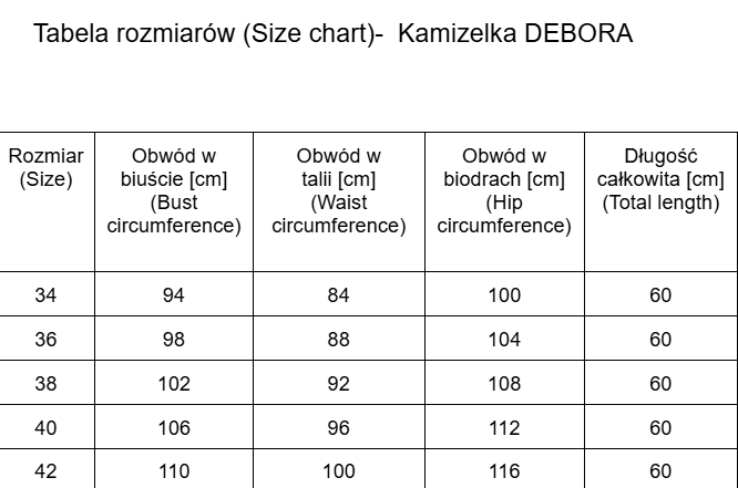 Zachęcamy do zapoznania się z tabelą rozmiarów. Wymiary podane w tabelach są obwodami płaszcza, a nie sylwetki, która powinna go nosić.