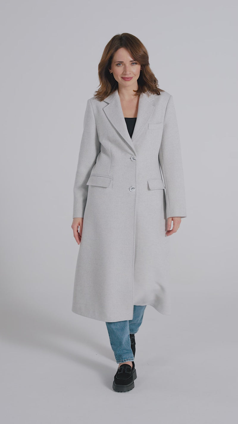 Długi, elegancki, taliowany, jednorzędowy płaszcz. Zapinany na guziki, z klasycznym, rewersowym kołnierzem. Po bokach oraz na linii biustu po lewej stronie, poziome wpuszczane kieszenie. Na rękawach 3 ozdobne guziki. Tył gładki, z wysokim zakładanym rozporkiem. Produkt lekko ocieplony, idealny na jesień i zimę.