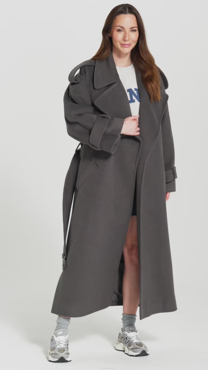 To płaszcz, który bierze wszystko, co dobre z naszych bestsellerów, i daje Ci więcej swobody. Opuszczane raglanowe rękawy i opadające ramiona tworzą miękką, otulającą linię — bez zbędnego dopasowania, ale z wyczuciem sylwetki. Duże klapy podkreślają charakter, a rękawy wykończone paskami wokół nadgarstków dodają detalu, który zatrzymuje spojrzenia.