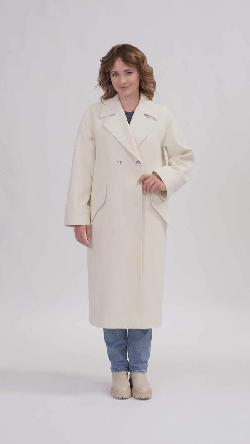Długi, elegancki, jednorzędowy płaszcz, zapinany na kryte napy oraz dodatkowy podwójny guzik, z klasycznym rewersowym kołnierzem. Z przodu dwie skośne kieszenie, ozdobione patkami. Opuszczane rękawy, zakończone imitacją mankietu. Model o kroju oversize, w związku z czym zachęcamy wybór mniejszego rozmiaru. Tył gładki, bez rozporka, na podszewce, ocieplany, idealny na jesień i zimę.