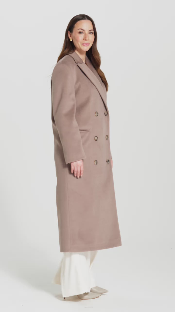 To płaszcz o konstrukcji high fashion, zaprojektowany z myślą o sylwetce, która ma głos. Szerokie ramiona z dużymi poduszkami nadają mu mocny, wyrazisty kształt — przyciągają spojrzenia, ale przede wszystkim dają poczucie siły. Krój w formie odwróconego trójkąta – z wyraźną linią ramion i zwężającym się dołem – tworzy nowoczesną, wyrzeźbioną sylwetkę. Dla kobiet, które lubią, gdy ubranie pracuje razem z ciałem.