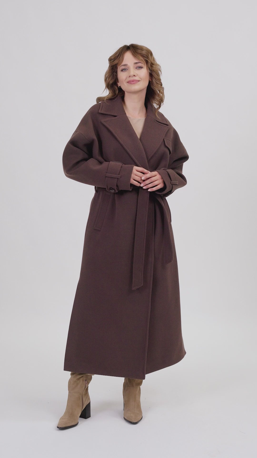 Ten jednorzędowy płaszcz w modnym fasonie oversize jest zapinany na dyskretne kryte napy. Ozdobiony jest paskiem u rękawów i dwiema wpuszczanymi kieszeniami, co dodaje mu charakteru. Po bokach znajdują się głębokie rozcięcia, a po lewej stronie patka imitująca kieszeń.