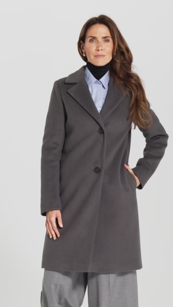 To płaszcz, który nie szuka atencji. Jest po to, żebyś miała spokojną, elegancką bazę — na co dzień, do pracy, na wyjście. Klasyczna długość do kolan, prosty krój, rewersowy kołnierz i dwa guziki – nic więcej nie trzeba. To właśnie jego prostota sprawia, że pasuje do wszystkiego i nie wychodzi z mody.