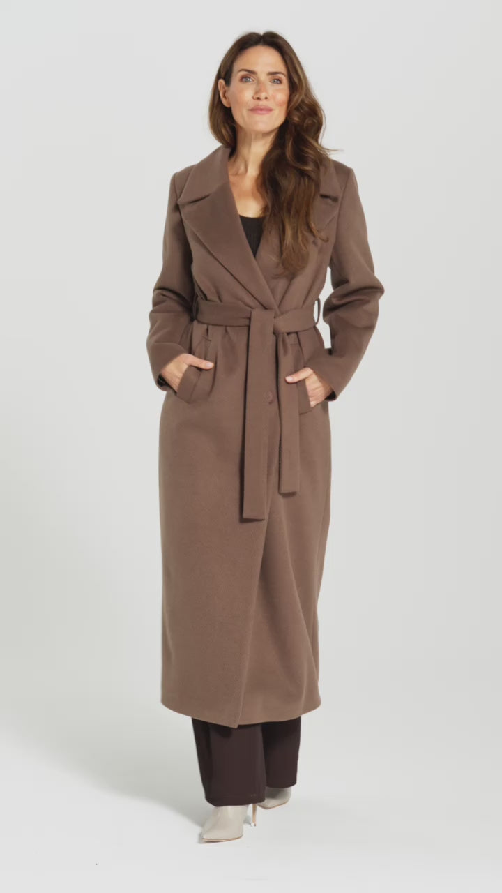 Płaszcz VERONA maxi jasna czekolada jodełka