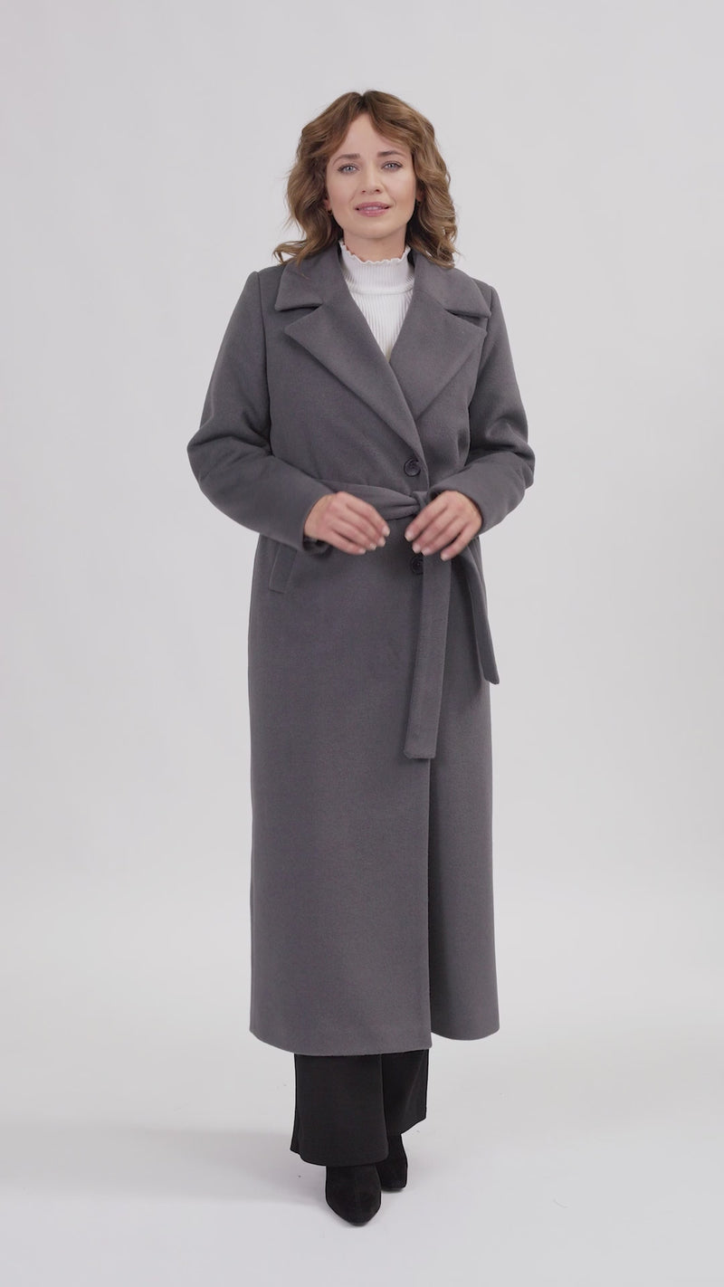 Ma wszystko, co powinien mieć klasyk – i ani grama zbędnych dodatków. Długość maxi wydłuża sylwetkę. Klapy i kołnierz trzymają linię. Dwa guziki jeden pod drugim to mocny akcent – ale pod nimi ukryliśmy autorskie zapięcie na napy, które porządkuje całość i daje czystość formy.