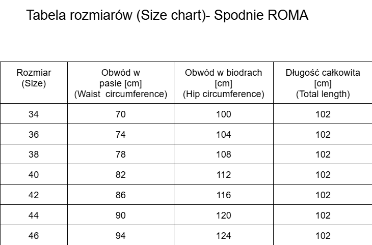 Zachęcamy do zapoznania się z tabelą rozmiarów. Wymiary podane w tabelach są obwodami płaszcza, a nie sylwetki, która powinna go nosić.