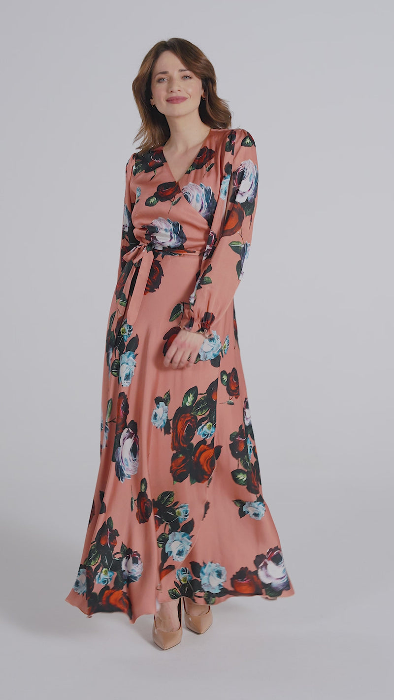 Sukienka JAŚMINA pomarańczowa w róże