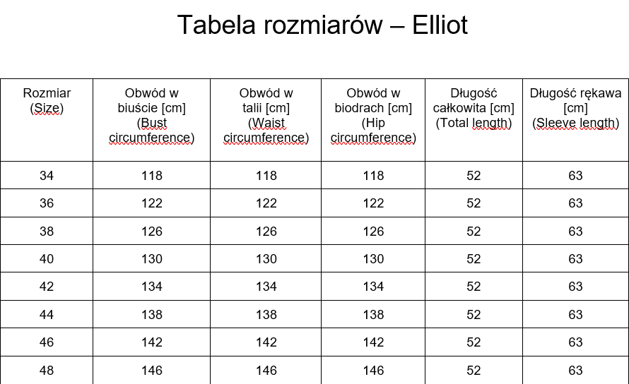 Zachęcamy do zapoznania się z tabelą rozmiarów. Wymiary podane w tabelach są obwodami płaszcza, a nie sylwetki, która powinna go nosić.